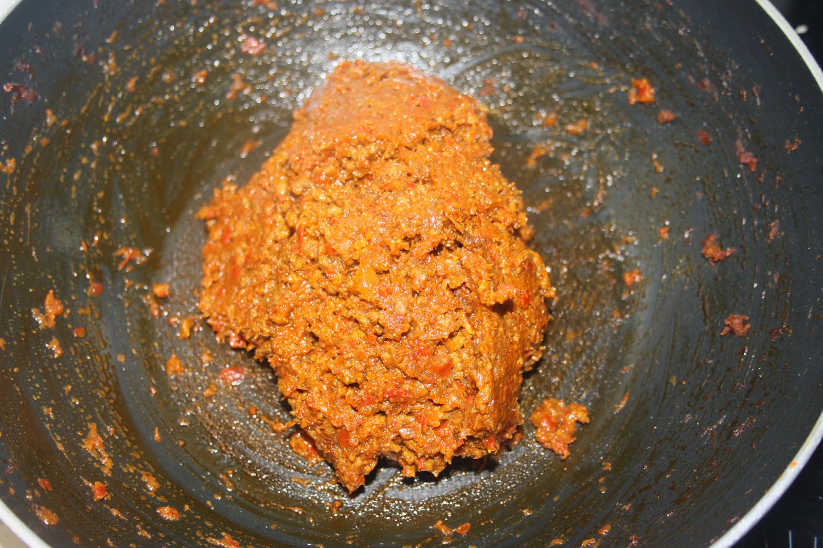 Maintenant il faut laisser cuire, cuire et encore cuire ! L’eau doit s’évaporer. Il faut bien mélanger de temps en temps pour ne pas brûler le fond !