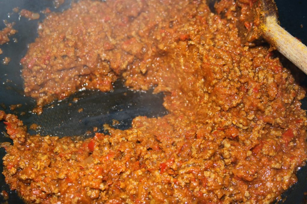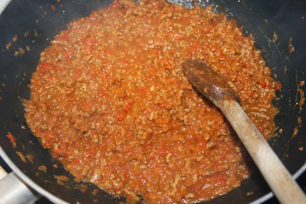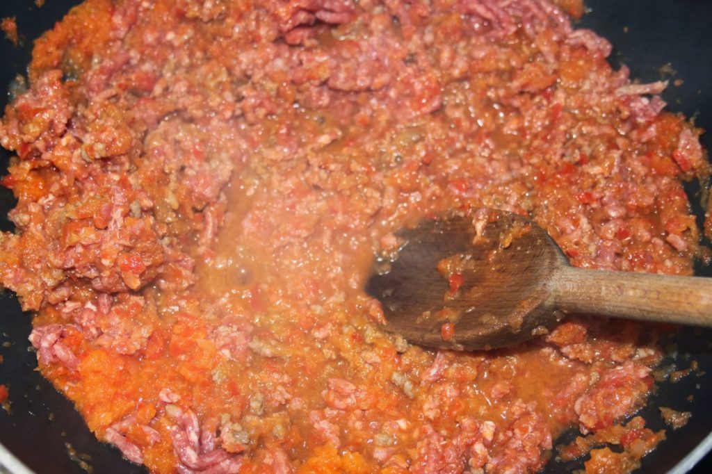 - Quand le tout est en ébullition, ajoutez la viande hachée.