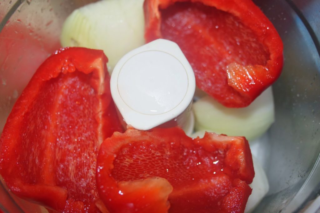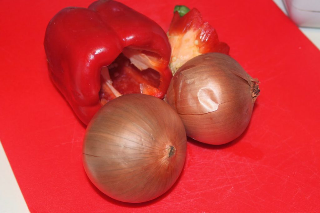 - Épépinez le poivron et épluchez les oignons.