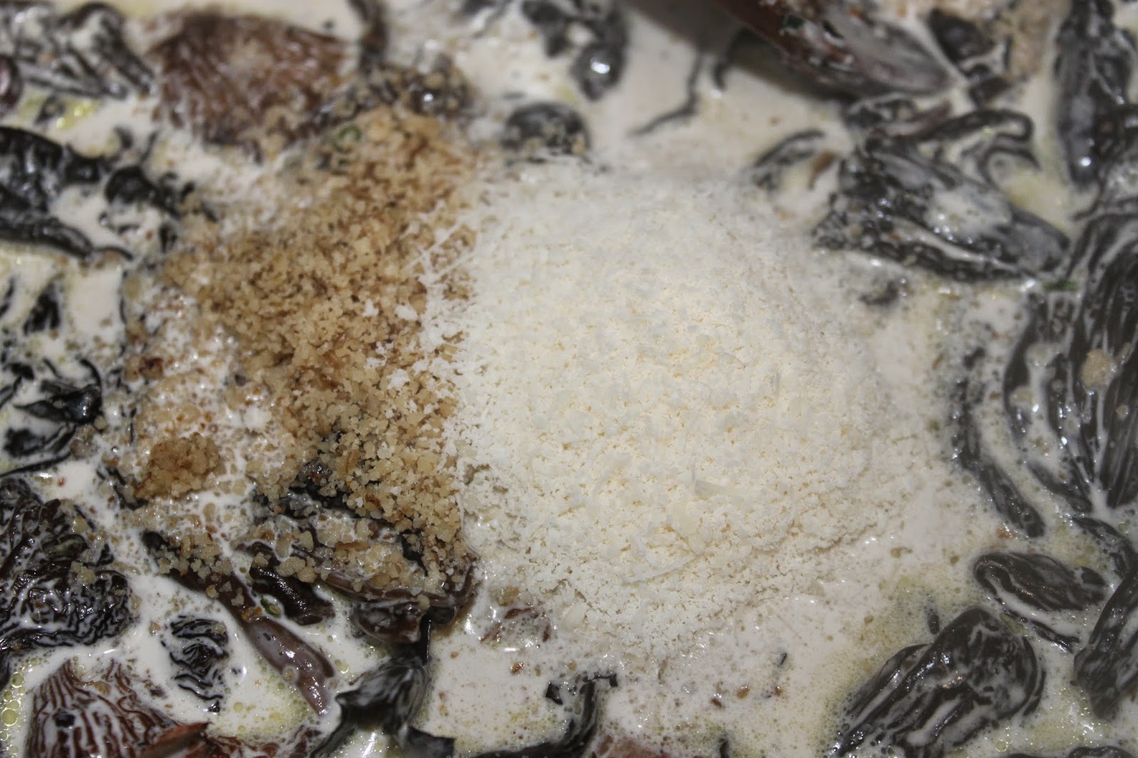 - Portez à ébullition et ajoutez la poudre de noix et le parmesan.