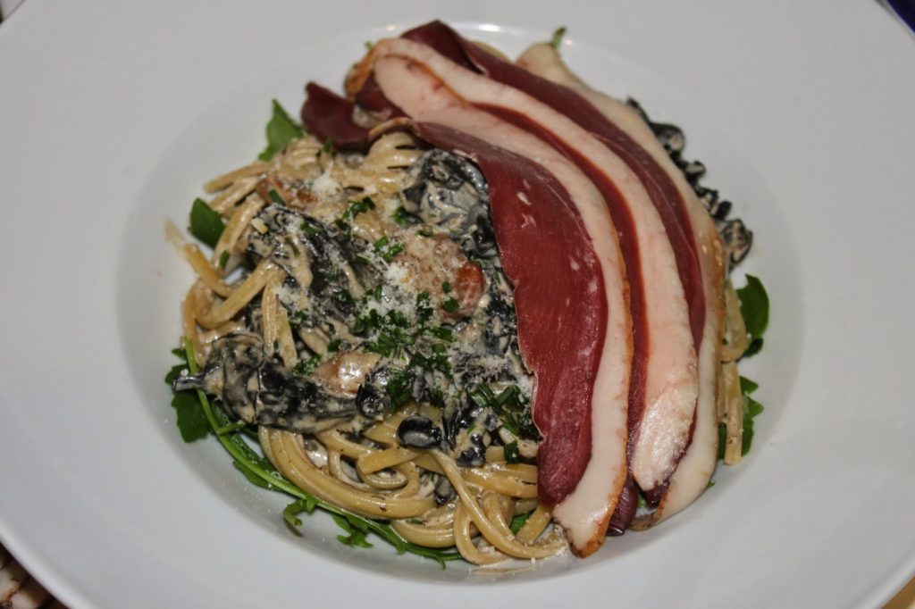 - Ajoutez du magret de canard fumé à volonté. J’ai trouvé ce magret en longue tranche comme au restaurant « Café Louise » ! Mais cela ne changera rien au goût !
