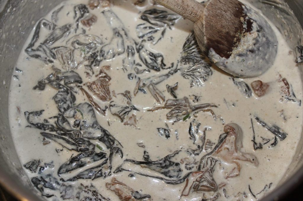 - Mélangez soigneusement. Salez, poivrez et faites cuire pour épaissir la sauce légèrement.