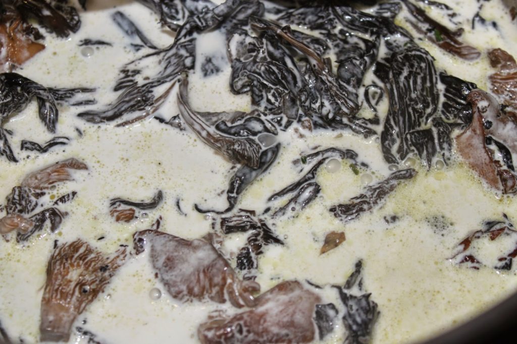 - Faites cuire les champignons quelques minutes. Versez ensuite la crème liquide entière.
