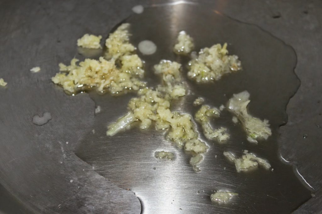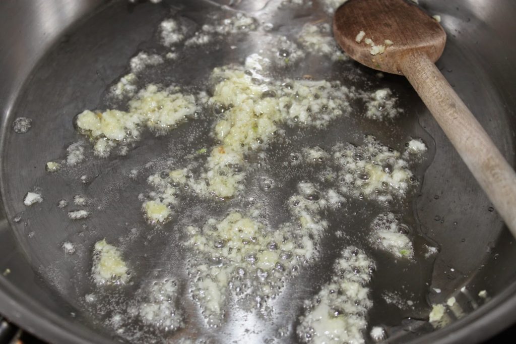 - Ajoutez les gousses d’ail écrasées et faites doucement frétiller sur feu modéré.