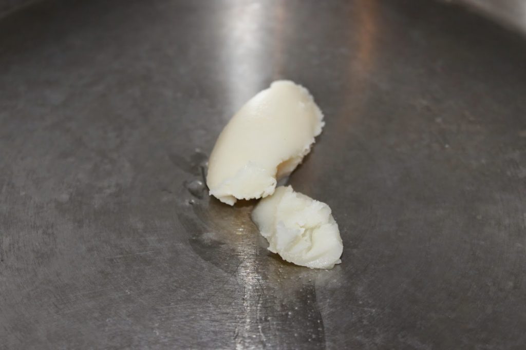- Faites fondre la graisse d’oie ou de canard dans une large poêle. Vous pouvez aussi mettre de l’huile d’olive !