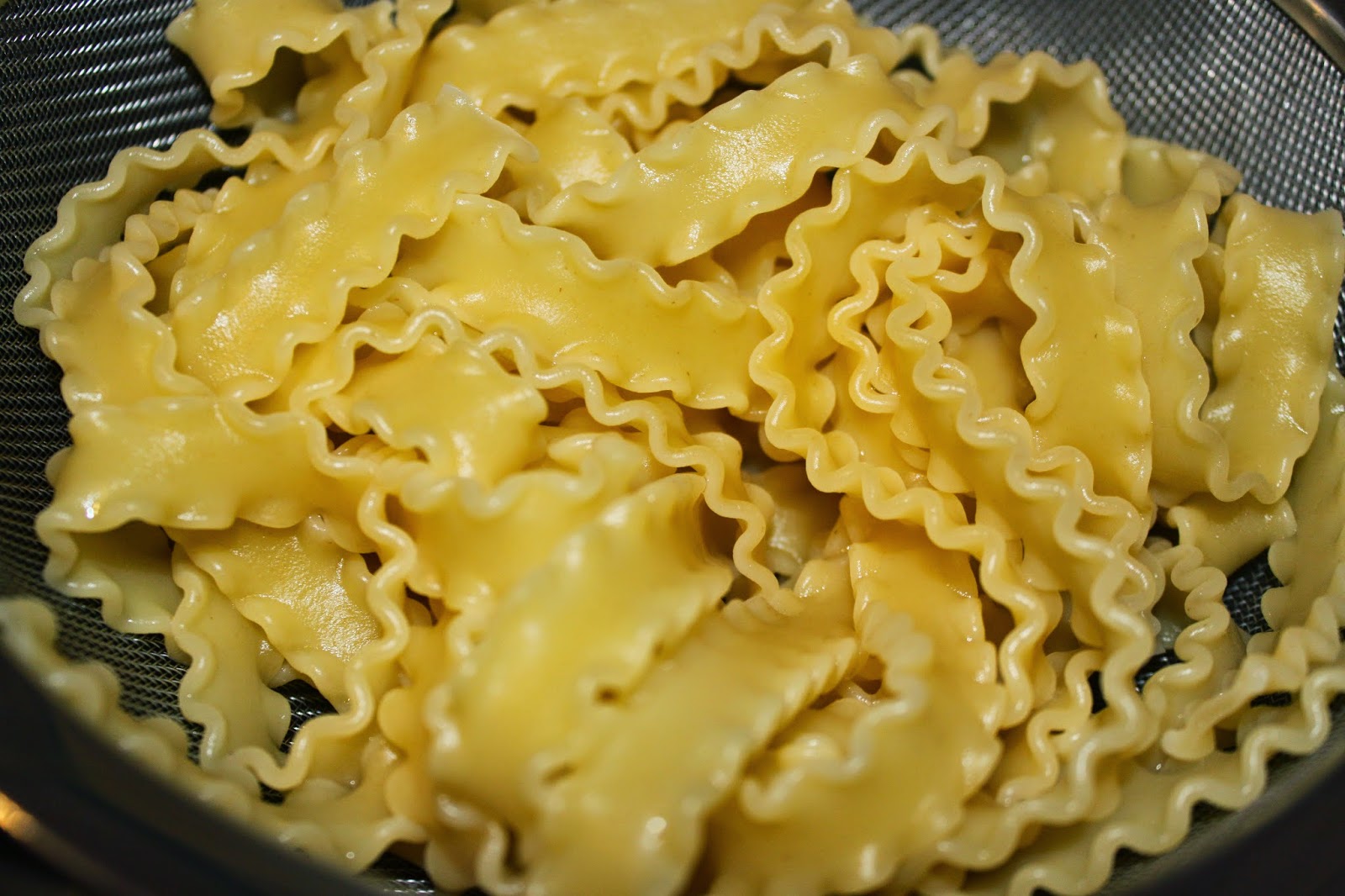 Faites cuire vos pâtes « al dente » dans de l’eau bouillante salée. Comme souvent, j’enlève 1 minute par rapport à ce qui est indiqué sur le paquet. Sinon, vous pouvez faire vos pâtes « maison », la recette est ICI !