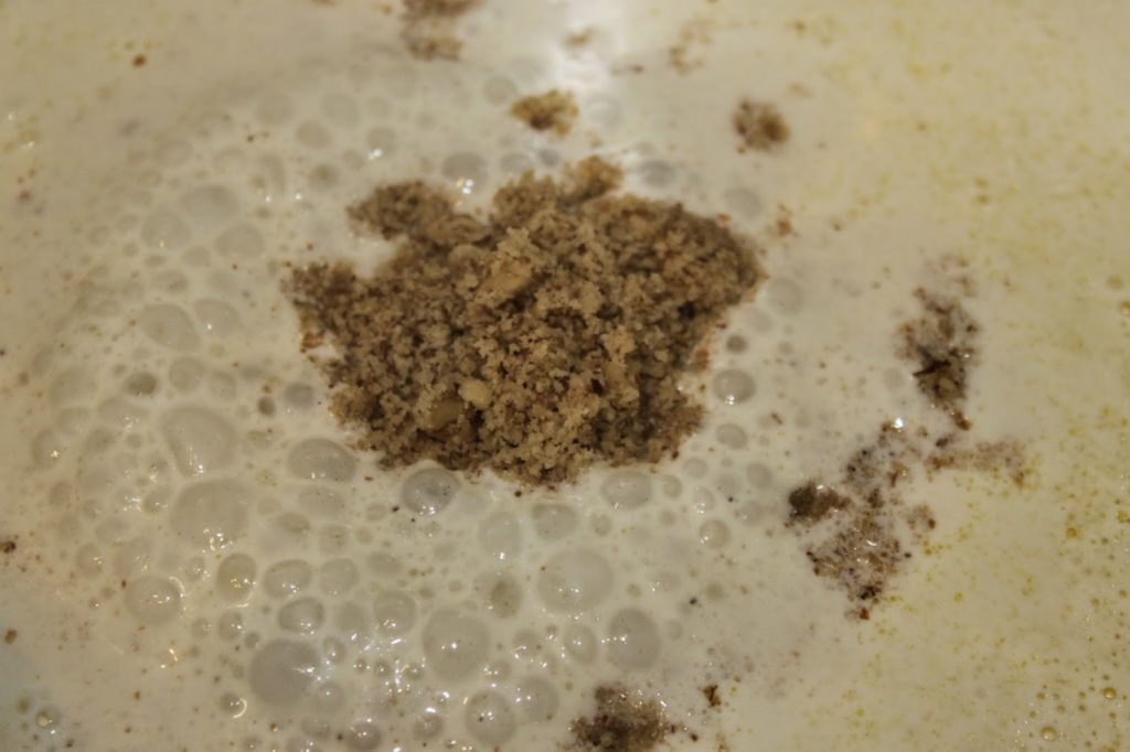 - Portez à ébullition puis ajoutez les noix réduites en poudre.