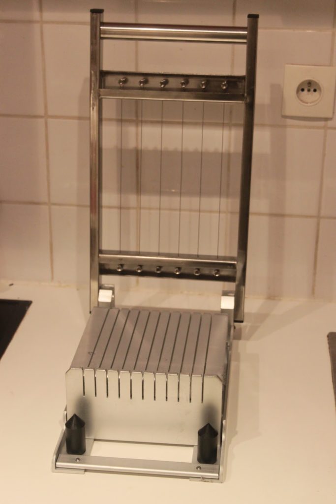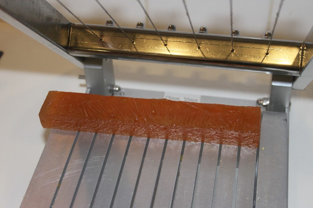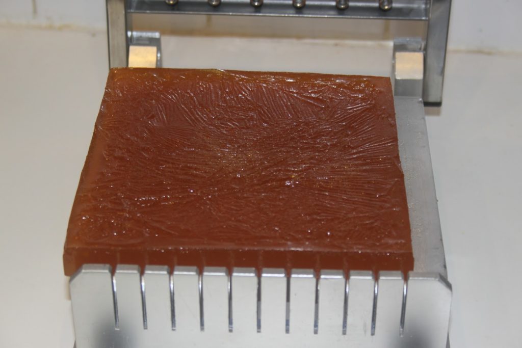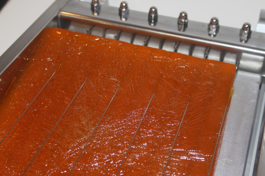 Pas de panique cependant! Cela reste un joujou que je me suis offert par pure folie!! On peut tout à fait couper la pâte de fruits avec un couteau!! Décadrer en passant un couteau le long de la masse prise et démouler.