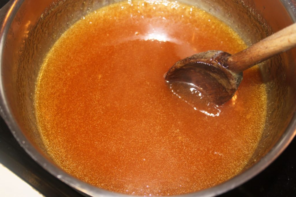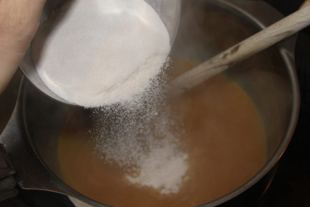 - Bien mélanger et porter de nouveau à ébullition. Ajouter le reste du sucre.