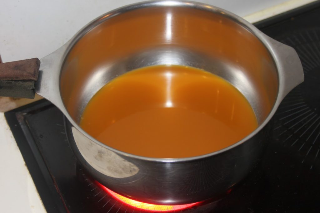 - Mettre la purée de fruits de la passion dans une casserole sur feu doux et porter à ébullition.