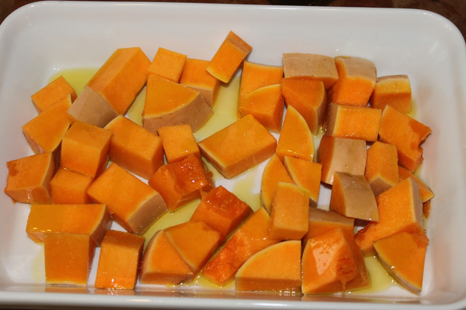 Arrosez généreusement d’huile d’olive. De toute façon, vous ne mettrez pas forcément toute l’huile dans les pâtes par la suite, mais elle aide à bien caraméliser la courge.