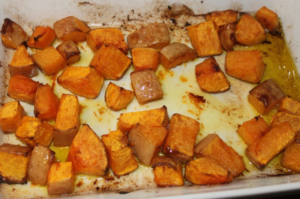 Les morceaux de courge sont prêts à temps et joliment colorés.