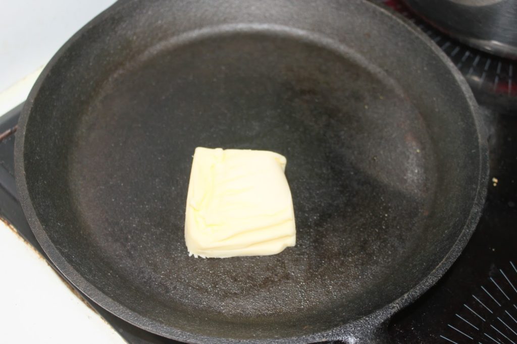 Mettez le beurre dans une petite poêle. (Ici j’ai fait la recette pour deux, donc il y a moins de beurre.)