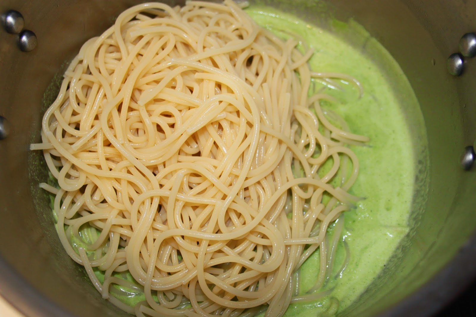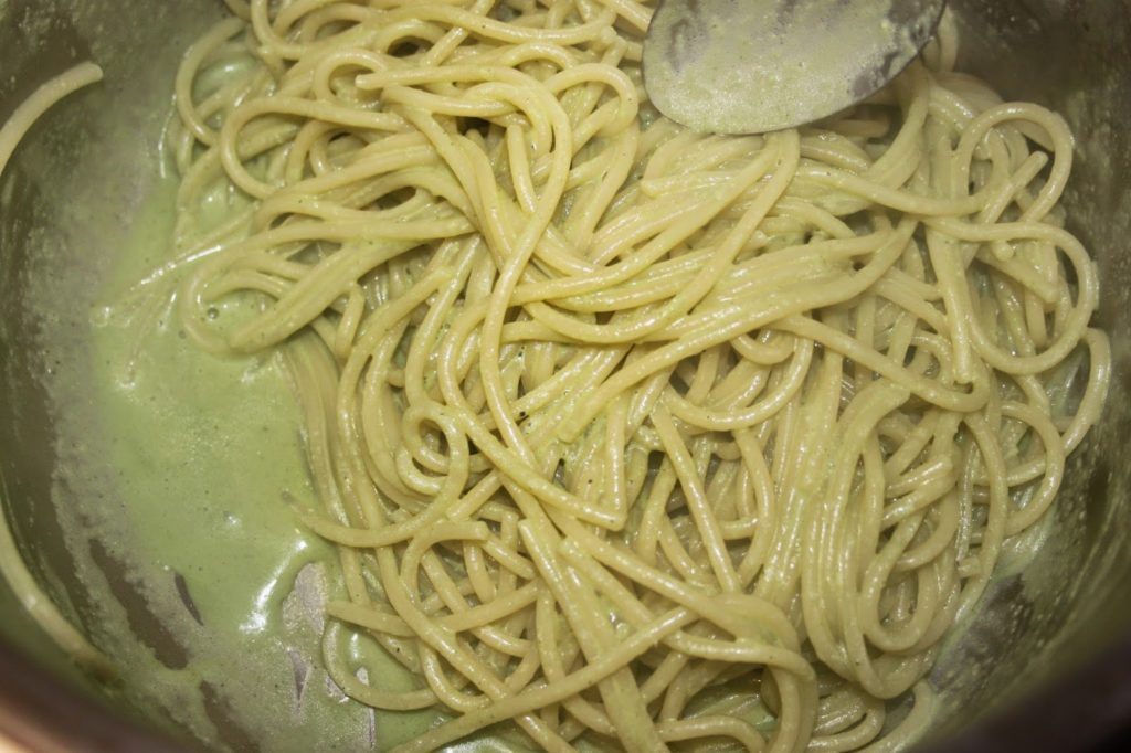 - Faites chauffer sur feu doux jusqu’à ce que les pâtes boivent la crème: il doit en rester juste un peu au fond quand on soulève les pâtes.
