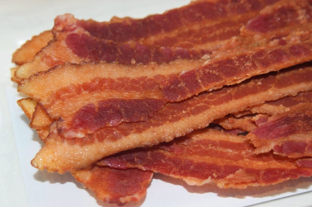 - Voici le bacon frit et croustillant ! Un must !! On peut en trouver déjà cuit ou alors achetez du bacon cru que vous faites cuire sur feu assez vif.