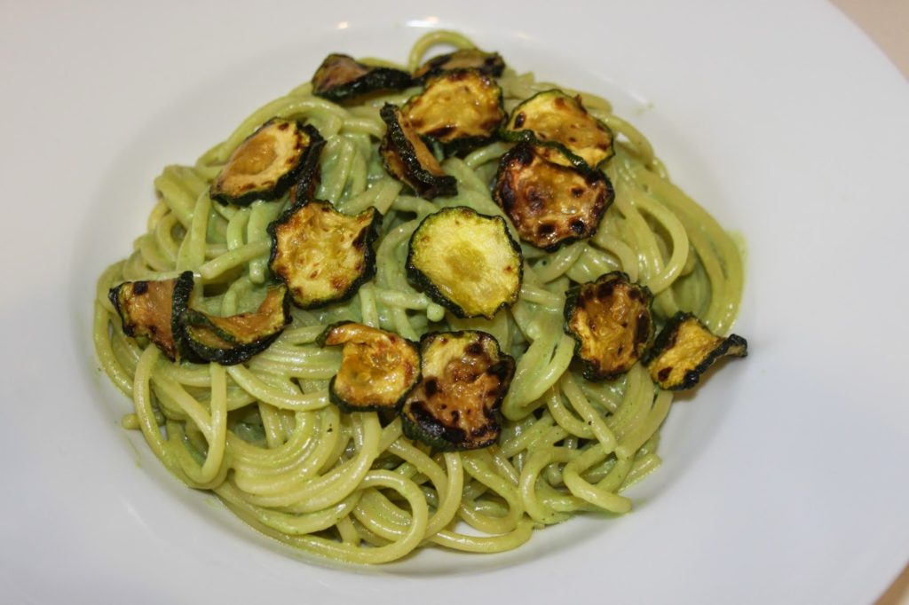 - Servez dans de grandes assiettes, ajoutez la moitié des courgettes dans chaque part.