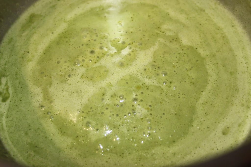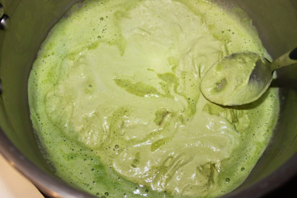 - Mettez la crème au basilic dans la casserole et portez-la à ébullition.