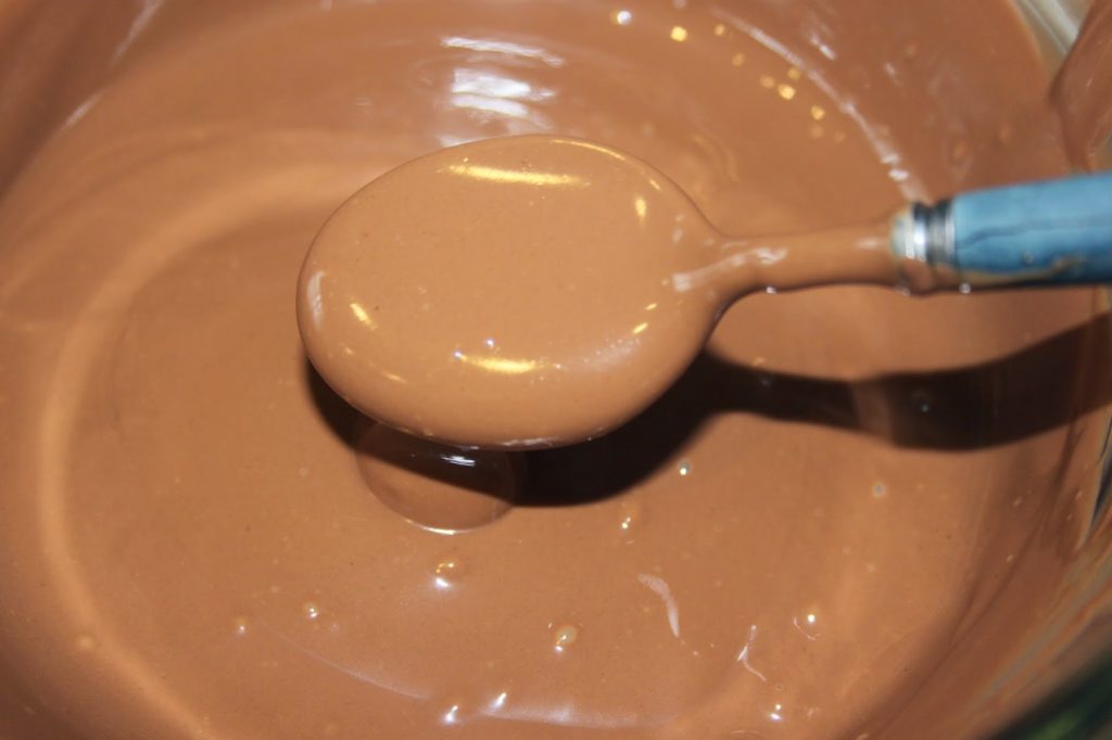 Secouez un peu le moule pour répandre le chocolat partout.