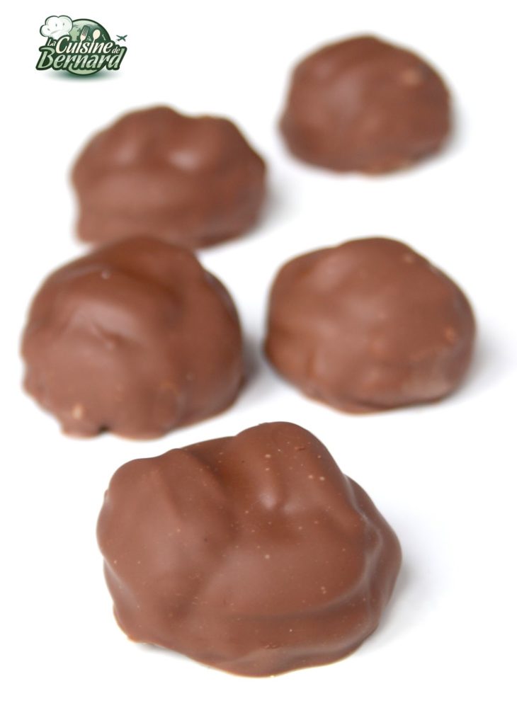 - Bien racler le dessous de la fourchette avant de poser sur un papier sulfurisé. Le caramel étant congelé, le chocolat va durcir très rapidement.