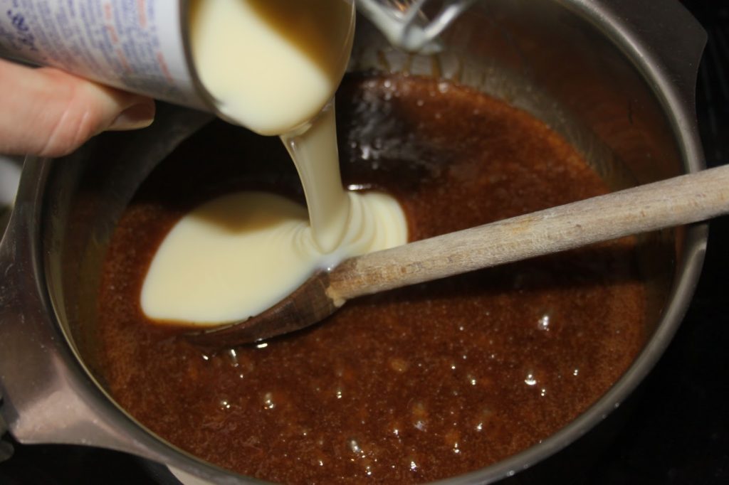- Quand le mélange arrive à ébullition, ajouter la boite de lait concentré sucré.