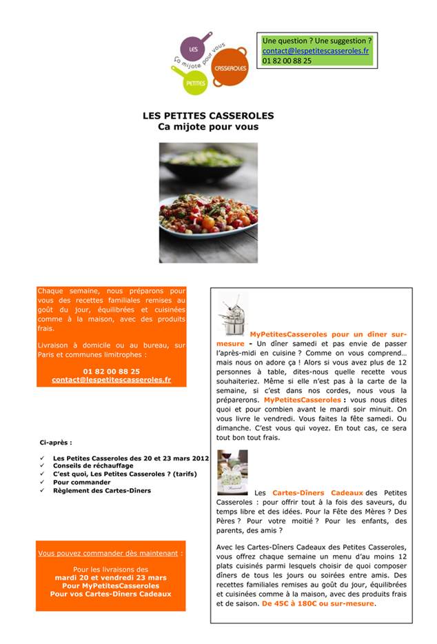 « Les Petites Casseroles » ont un nouveau site internet beaucoup plus clair, avec plein de photos des recettes que vou pouvez commander!