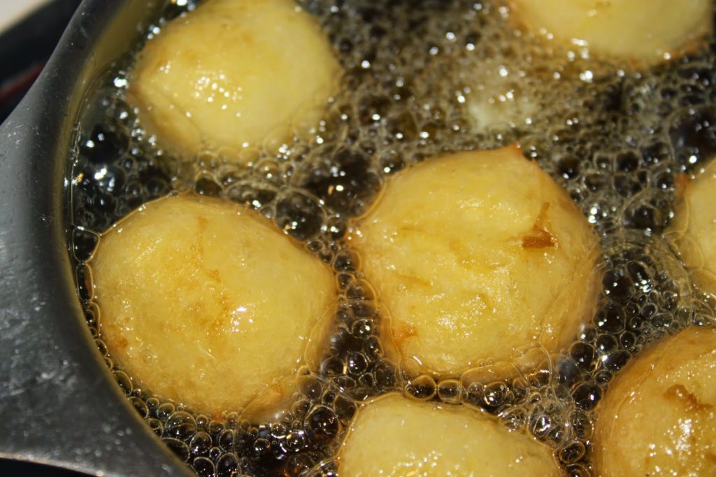 - Faites chauffer une casserole d’huile. Quand l’huile est assez chaude, prélevez une cuillerée à café de pâte et faites-la tomber en vous aidant d’une deuxième cuillère.