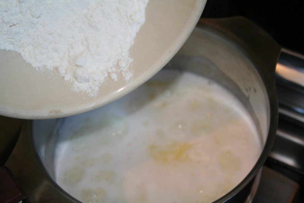 - Ajoutez la farine d’un coup hors du feu.