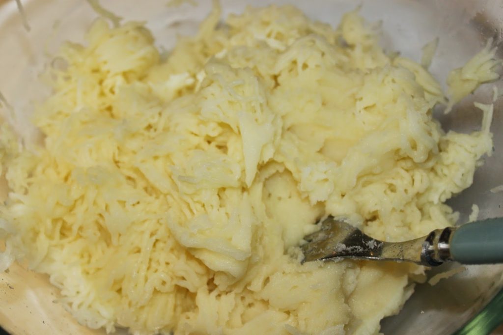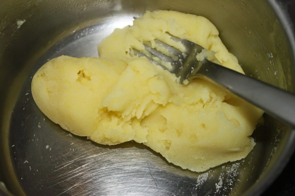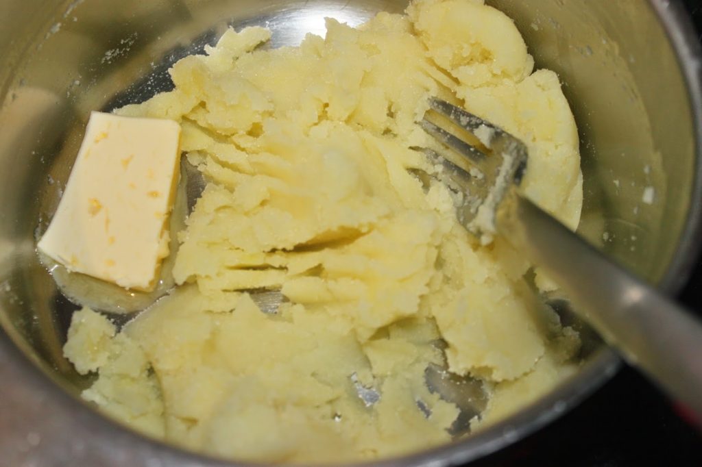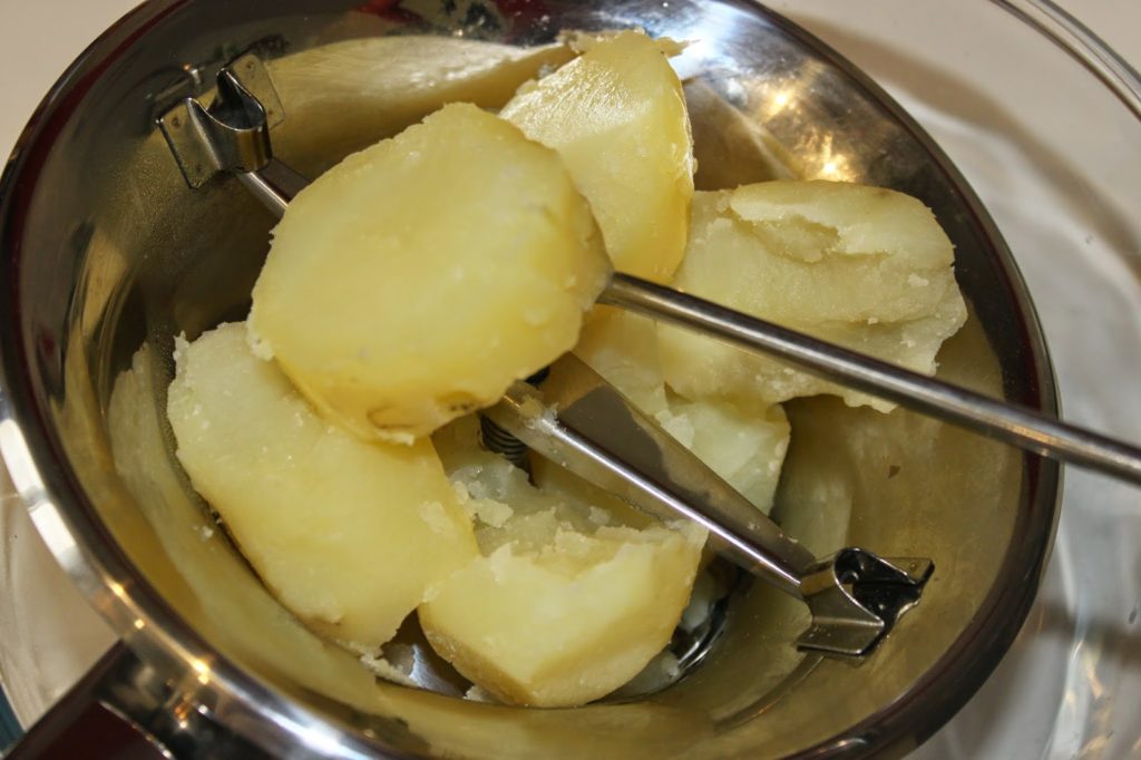 - Faites cuire vos pommes de terre à la vapeur. Épluchez-les et passez-les au presse-purée ou écrasez-les soigneusement à la fourchette.