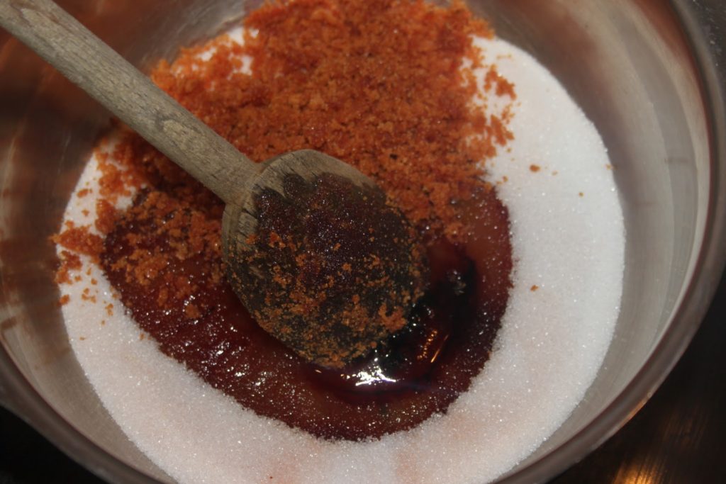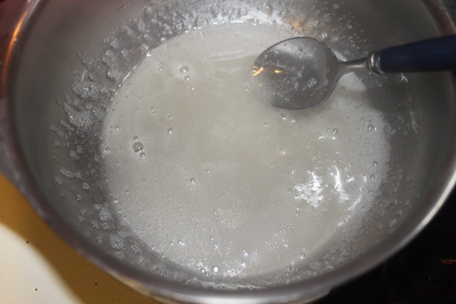 - Ajouter suffisamment d’eau pour imbiber le sucre, environ 50g.
