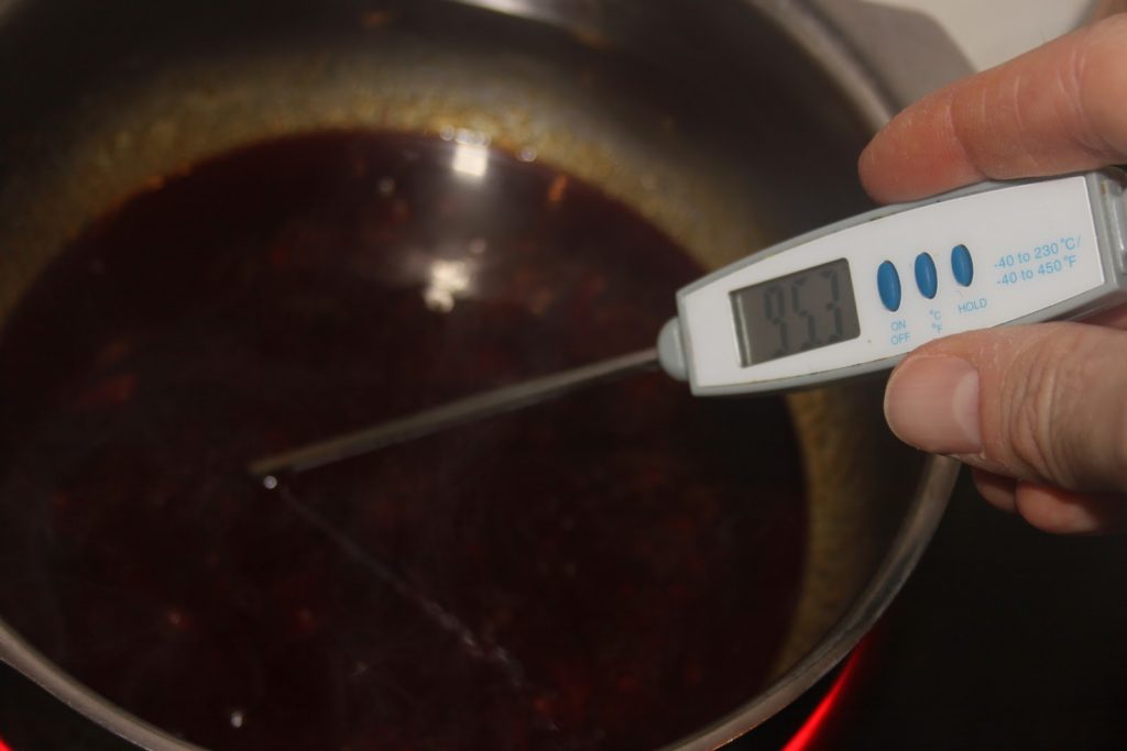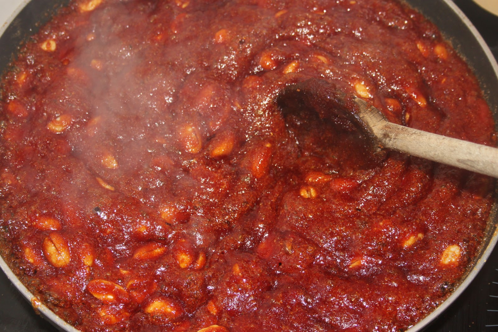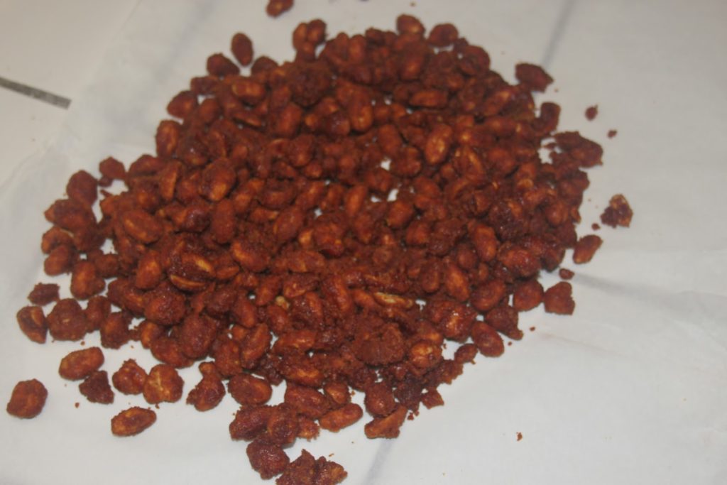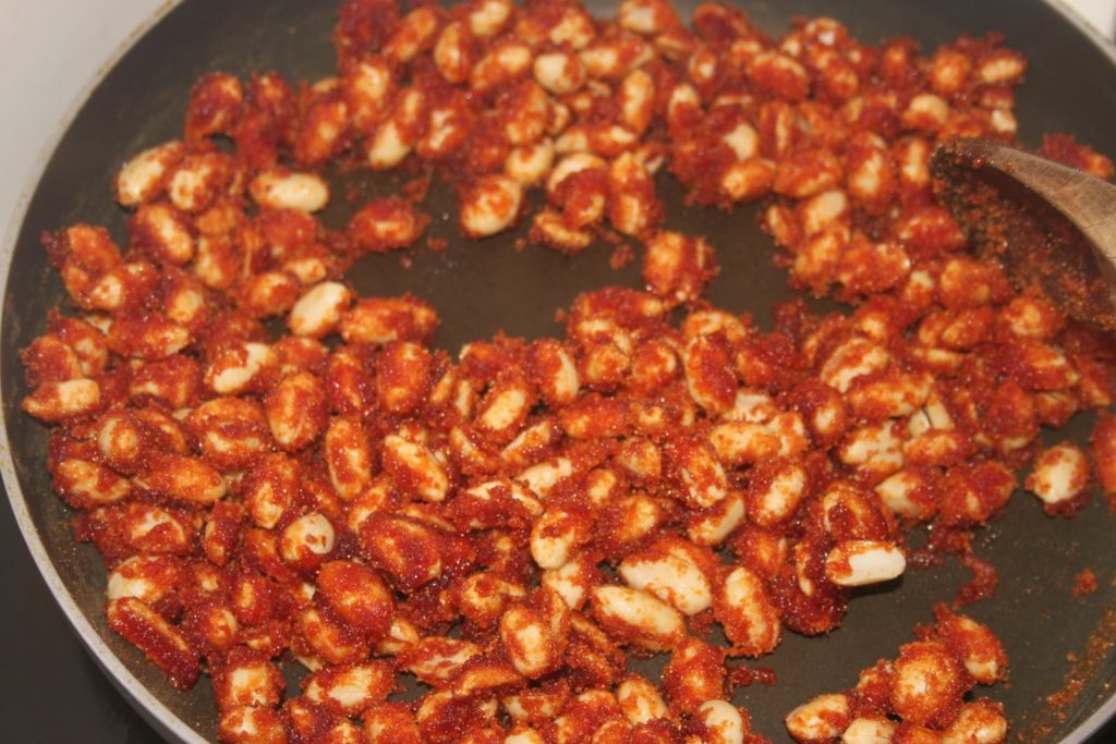 - Trier les cacahuètes et remettre le sucre qui n’a pas couvert les cacahuètes dans une casserole qui contient un autre tiers de sucre, de l’eau et du colorant.