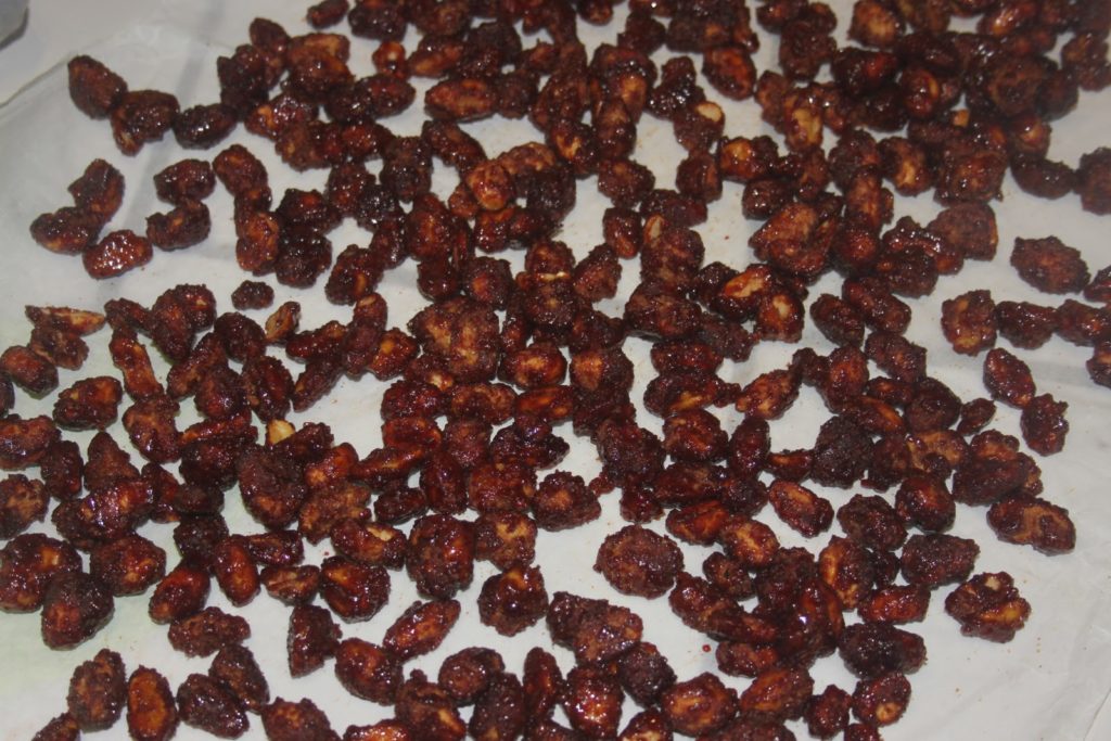 - Laisser durcir (le sucre sur les cacahuètes) sur un papier sulfurisé.