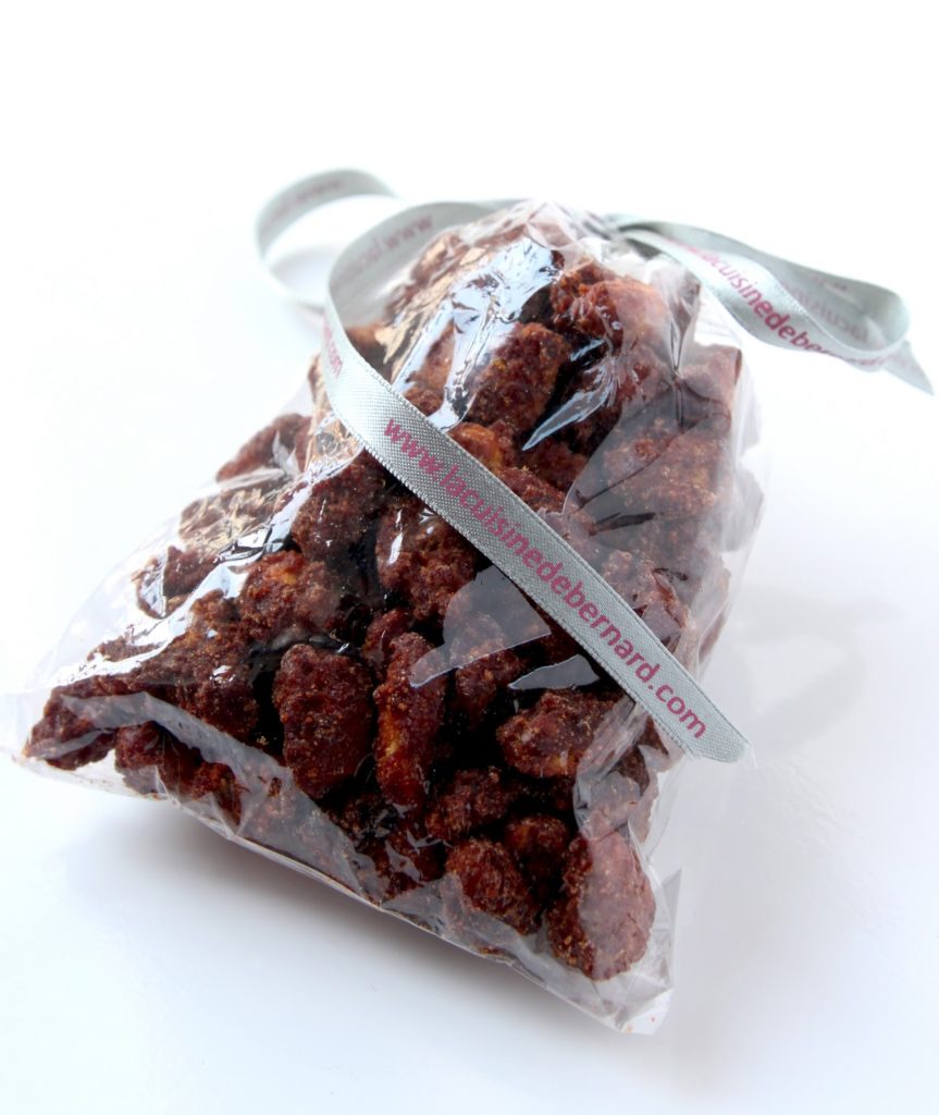 - Remettre les cacahuètes sur le papier sulfurisé et laisser durcir le sucre. Séparer les cacahuètes si elles se collent. Remettre ensuite les cacahuètes dans la cuve. Recommencer la dernière opération. À savoir: refaire une sirop avec le sucre qui n’a pas adhéré, le reste du kilo de sucre, du colorant, un peu d’eau jusqu’à 118-119°C. Verser sur les pralines doucement et en filet pour enrober les pralines de sucre. Laisser refroidir sur un papier sulfurisé puis caraméliser légèrement dans la poêle pour créer une petite couche de caramel.