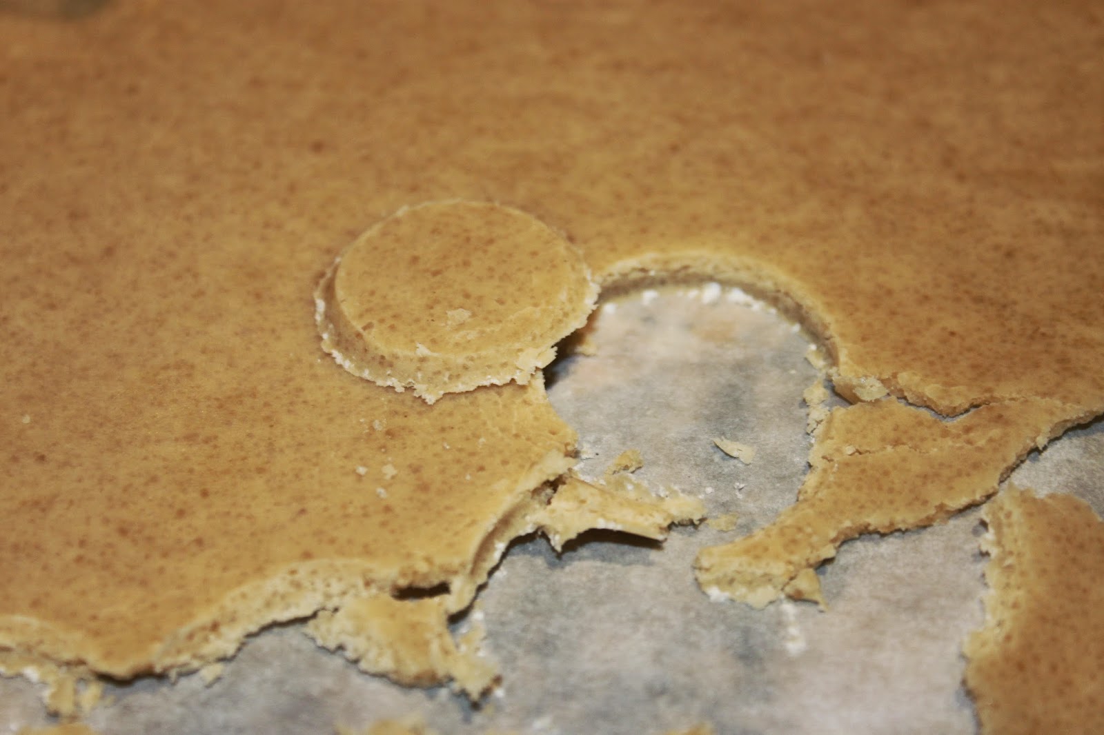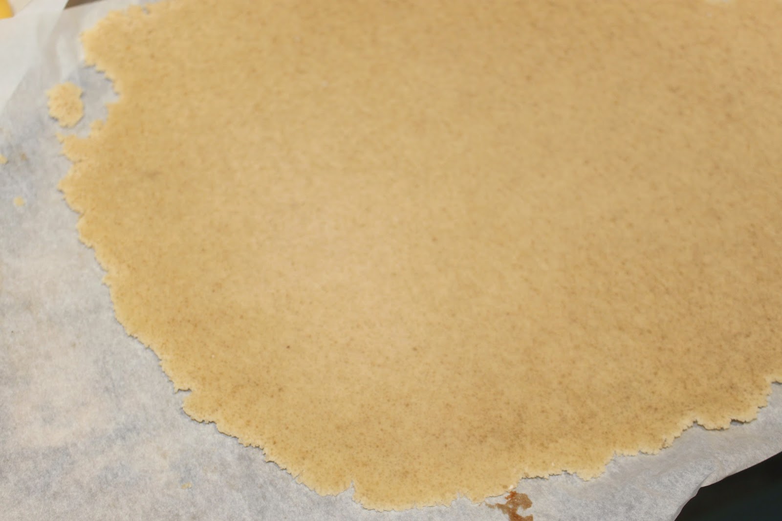 - Étalez la pâte le plus finement possible entre deux feuilles de papier sulfurisé. Transvasez le tout sur une plaque puis mettez au frais.