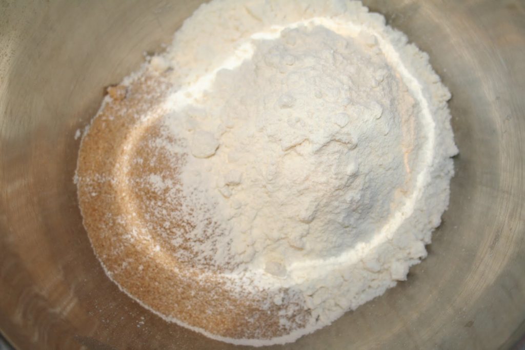- Mettez la farine et la cassonade dans un grand bol.