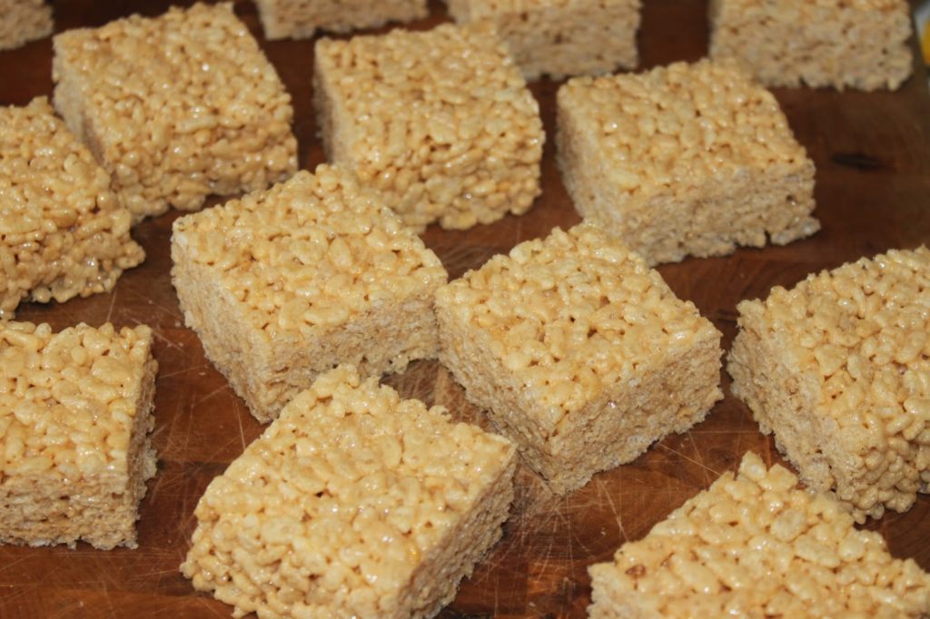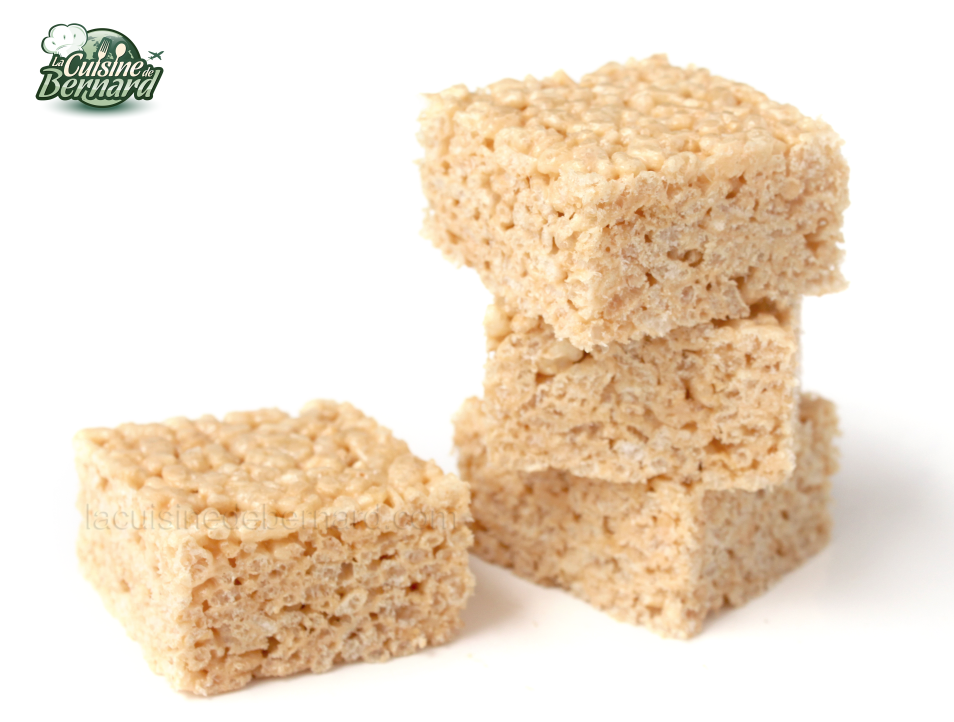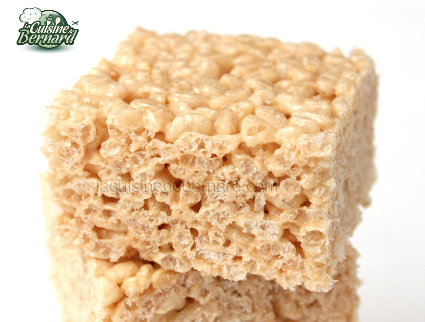J’avais rapporté cette recette des USA il y a de cela bien longtemps et je l’avais deux fois: une fois là-bas en 1992 je crois, puis un an plus tard à la maison. Toute la famille avait eu l’air si étonné de voir comment on procédait pour faire ces « treats » que je ne l’avais jamais refait. Je n’ai plus la recette sous la main mais sa simplicité m’a permis de la refaire à vue de nez. D’ailleurs il me semble qu’une recette équivalente se trouve sur tous les paquets de « rice krispies » aux États-Unis. C’est celle que je devais avoir ! Ces petites choses américaines sont vraiment sans prétention mais sont surtout très amusantes à faire pour les enfants. Les parents feront sans doute les gros yeux, mais avouez que vous les mangerez en cachette !
