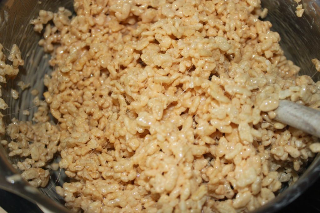 - Quand tous les marshmallows ont fondu, ajoutez les rice krispies.