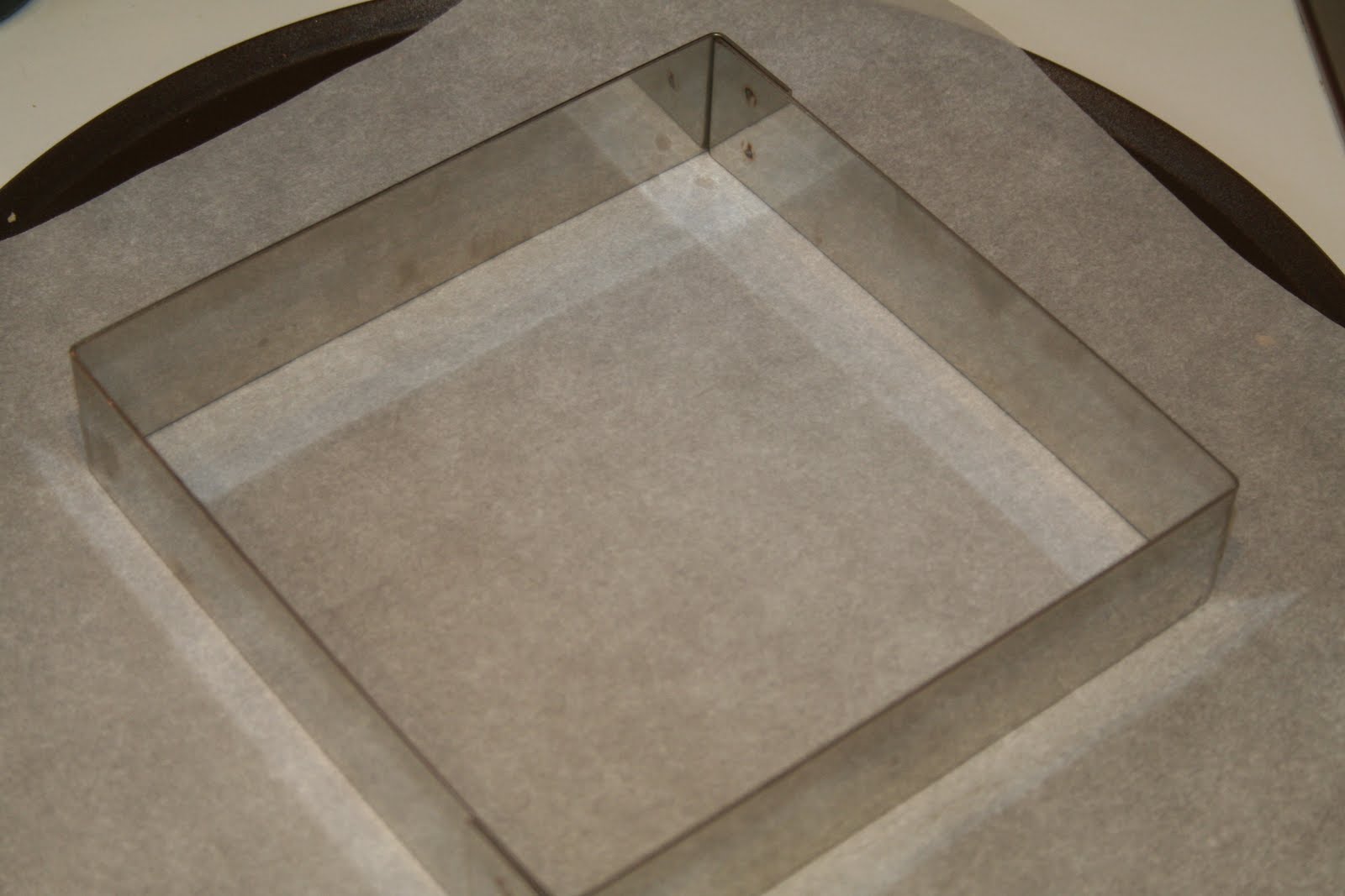 - Préparer un cadre de 16cm sur 16sm sur une plaque garnie de papier sulfurisé.