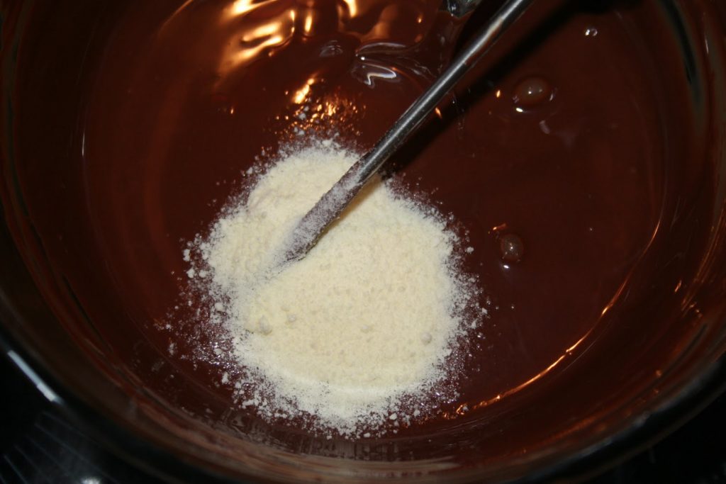 - Fondre le chocolat noir et le chocolat au lait au micro-ondes ou bain-marie.
