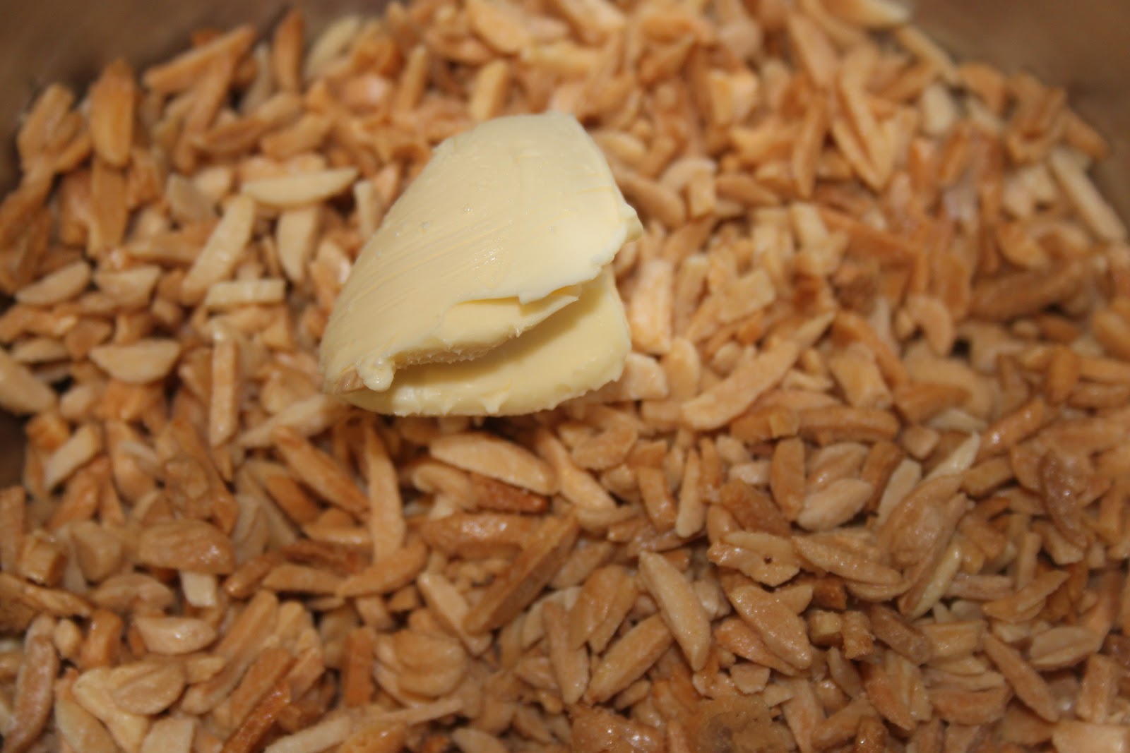 - Verser les amandes dans un grand bol puis ajouter le beurre.