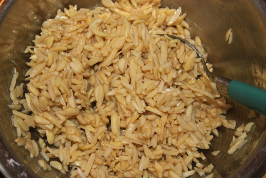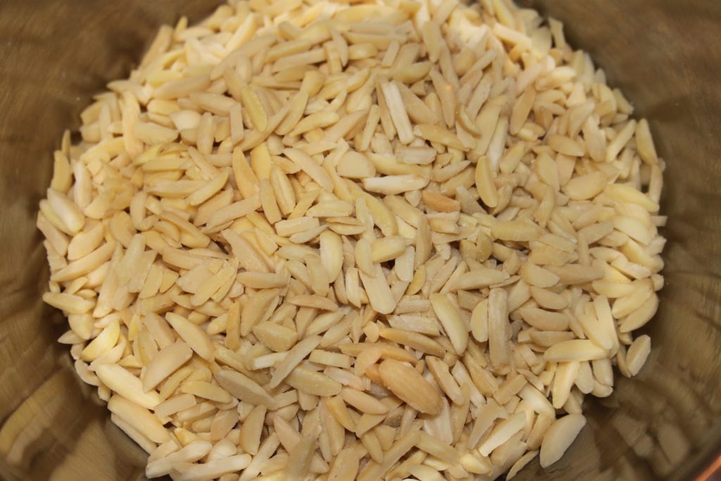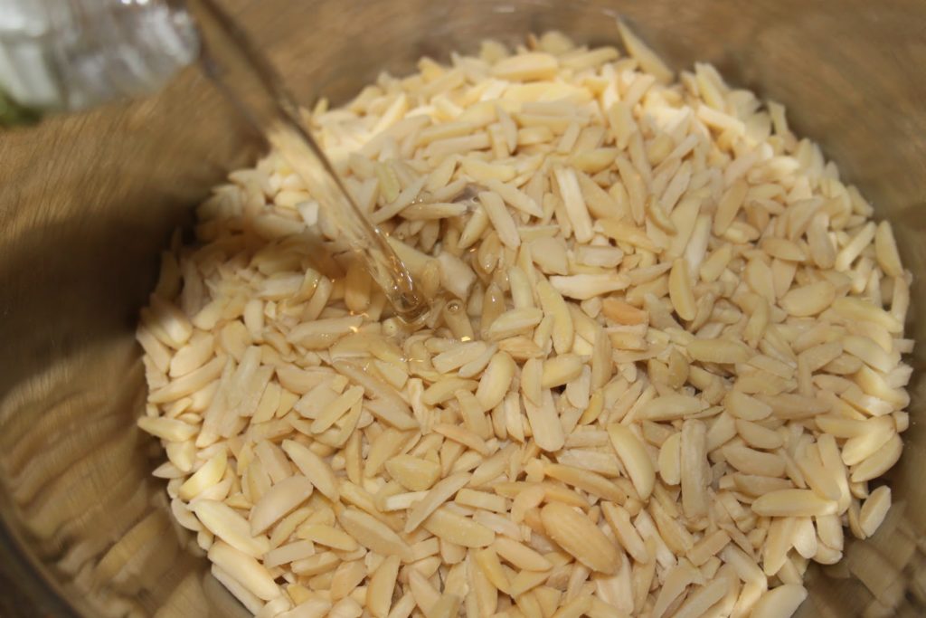 - Préchauffer le four à 180°C.Mettre les amandes en bâtonnets dans un bol.