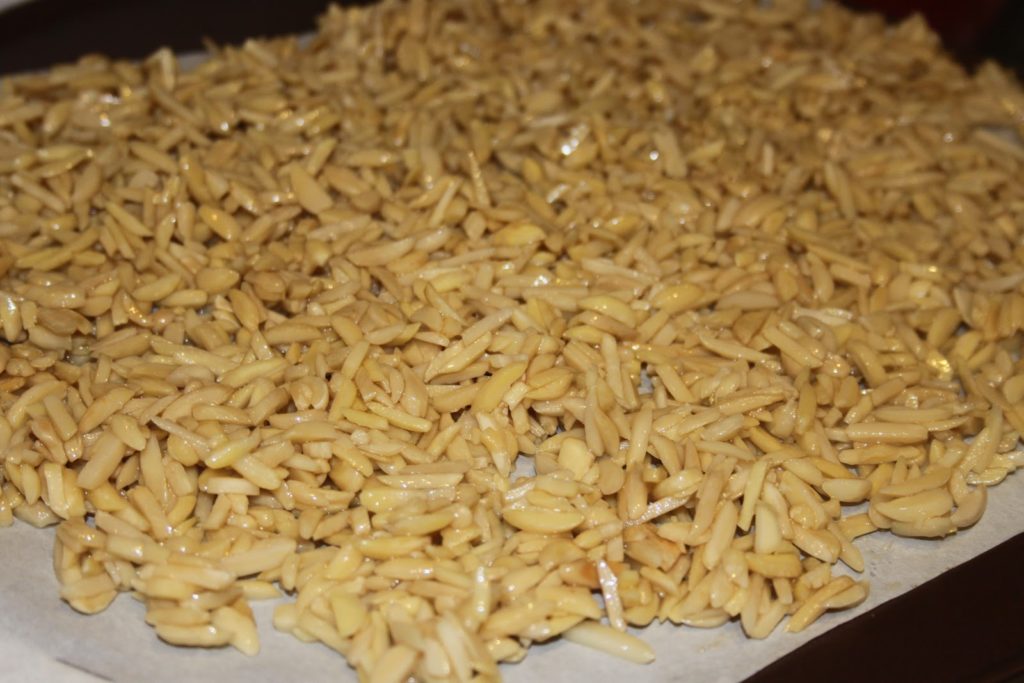Je ne sais pas combien de temps cela prend, mais au bout de 15-20 minutes, les amandes sont bien grillées et le sirop a disparu (les amandes sont bien sèches).