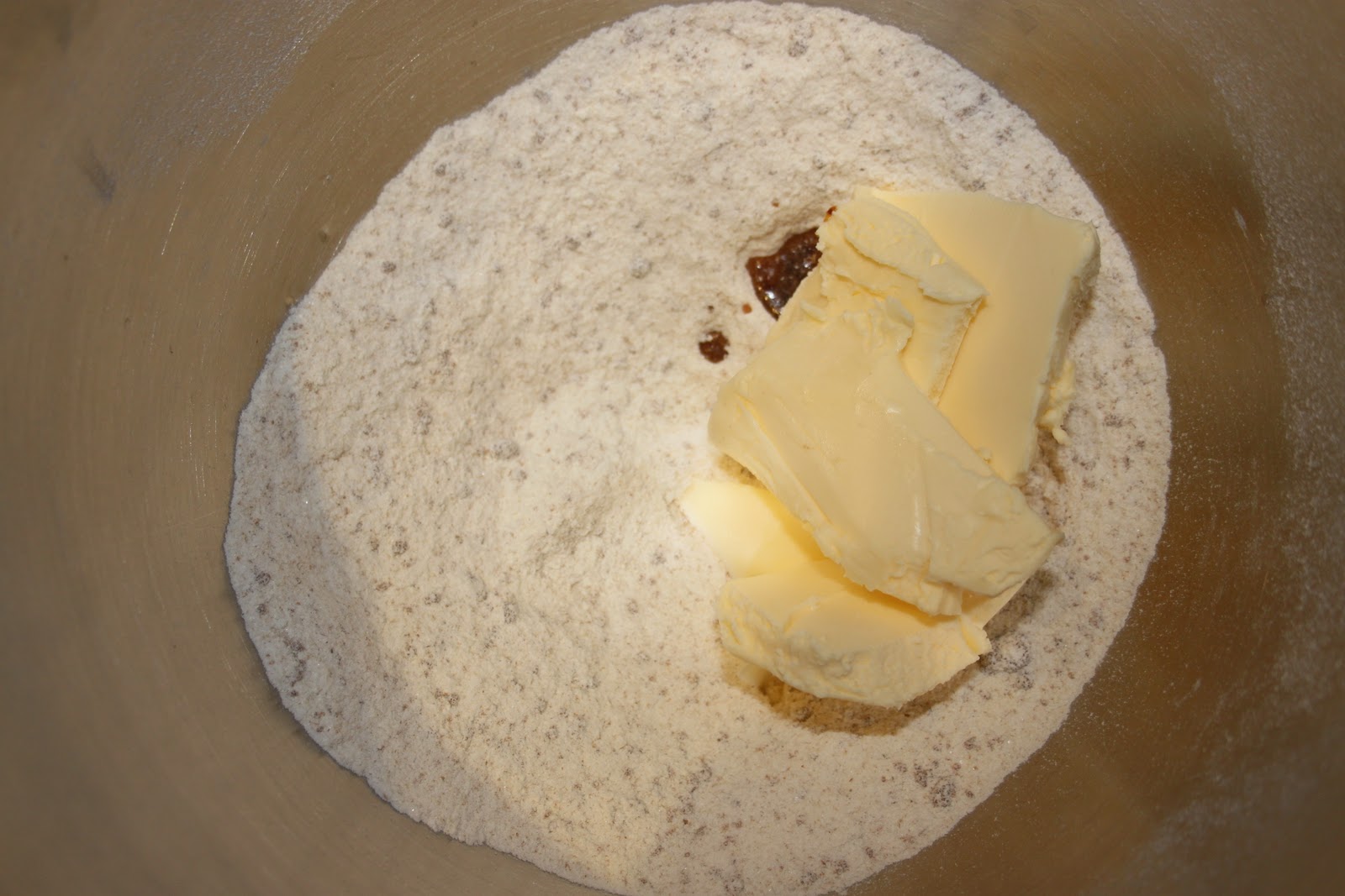 Bien mélanger puis ajouter le beurre froid coupé en morceaux.