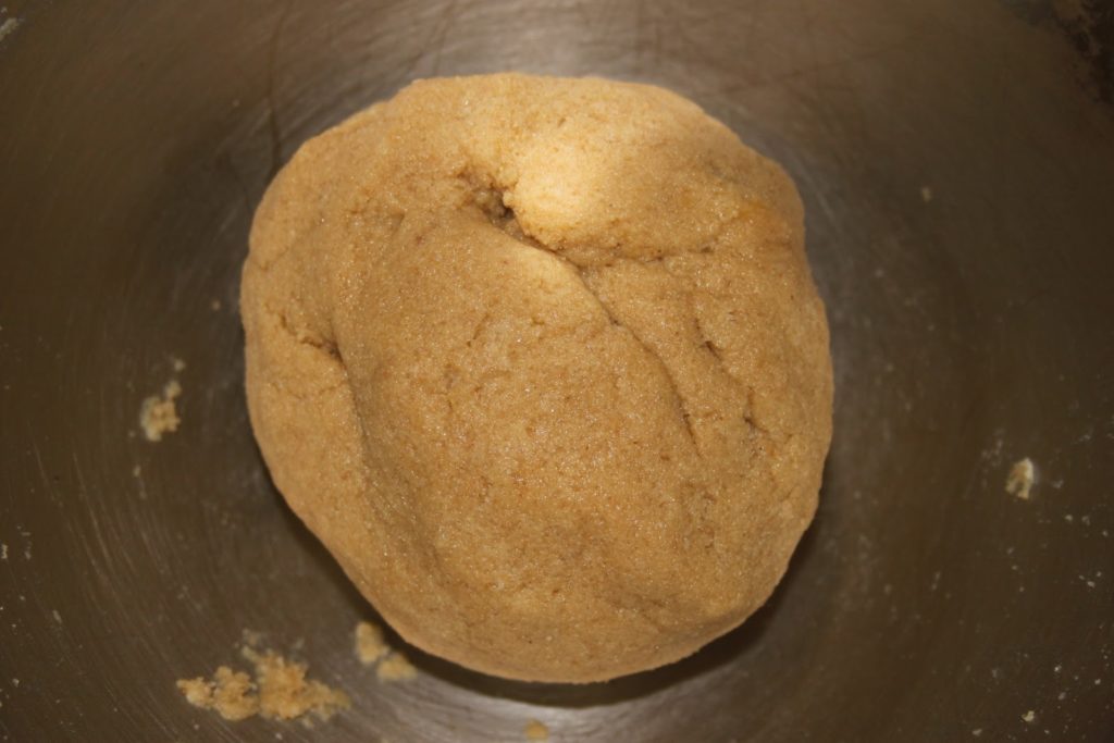-200g beurre -200g de sucre semoule blanc -40g de sucre de canne -360g farine -30g poudre lait -1/8 de cuillerée à café de levure chimique (comme toujours, j’utilise les cuillers américaines) -80g d’oeuf (il suffit de les battre et de peser) -2 cuillerées à café d’eau.