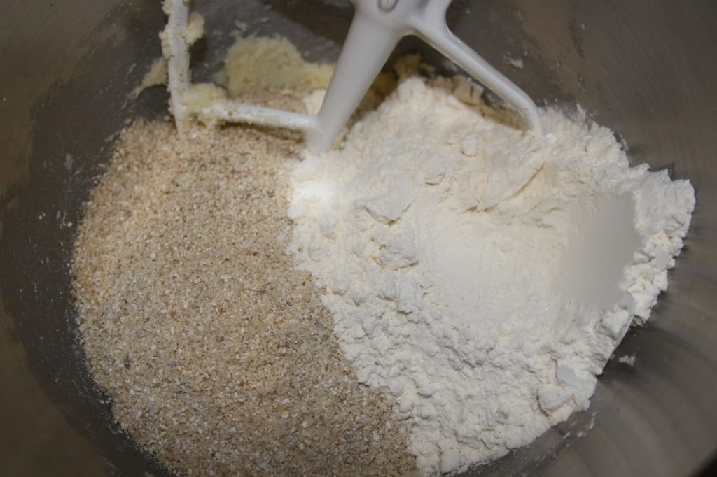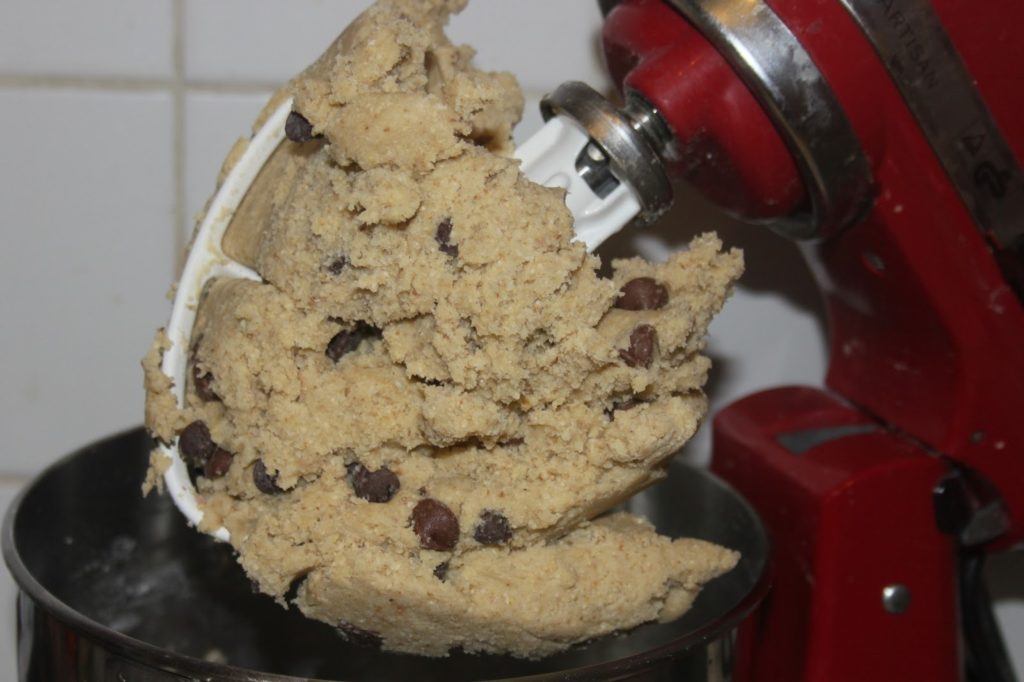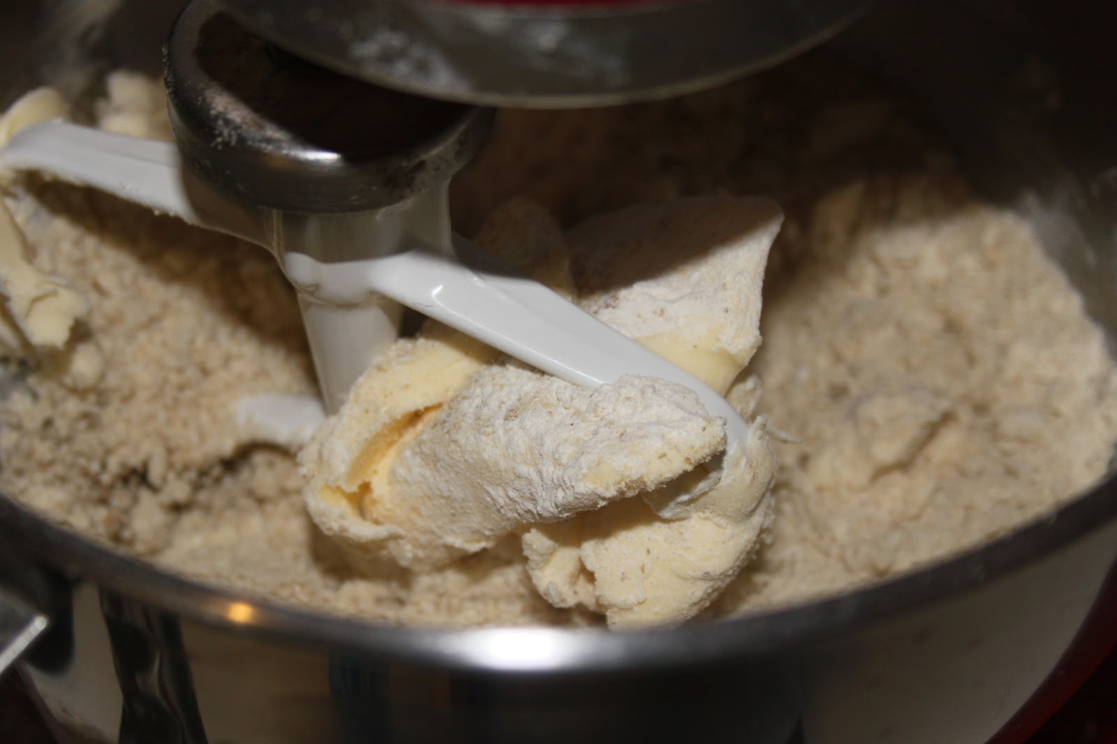 - Mélanger (avec le K du kitchenaid ou du kenwood) sans insister. Il faut juste homogénéiser le tout.