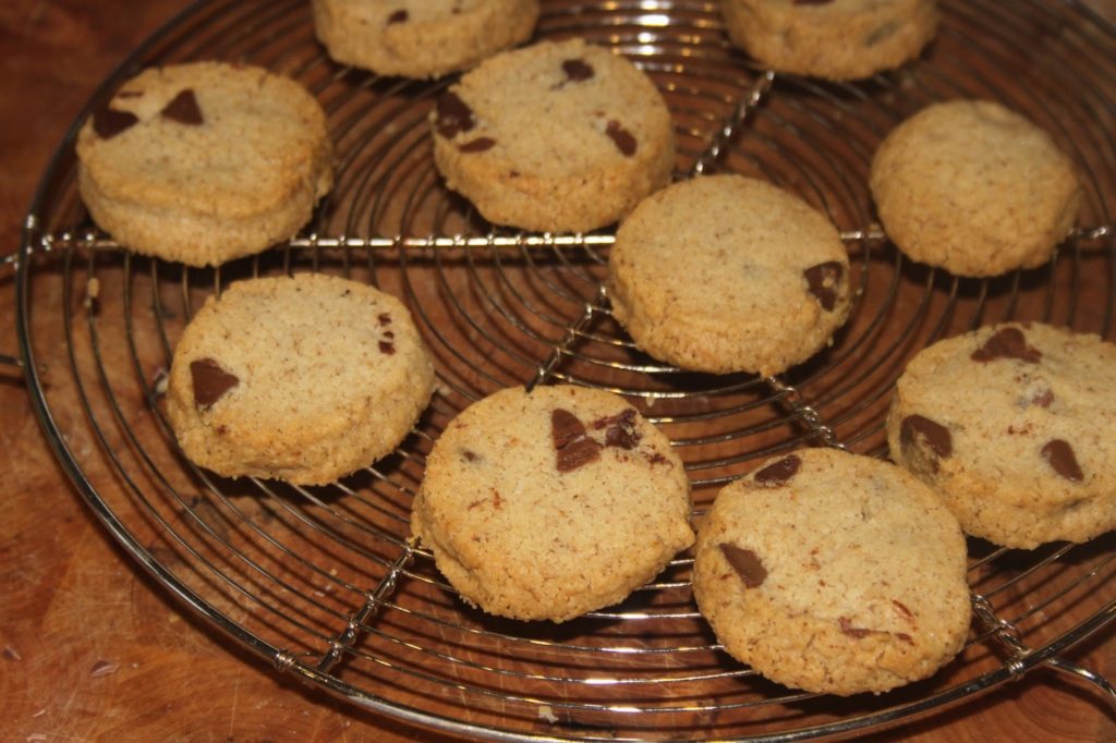 Ce n’est plus tout à fait un sablé ni encore vraiment un cookie. Vous connaissez maintenant mon obsession des sablés. Je ne me lasse jamais de tester de nouvelles façons de faire des petits gâteaux croustillants et rien ne me plaît plus que d’être dans ma cuisine à mettre des ingrédients au pif dans un bol et voir le résultat. Parfois cela ne fonctionne pas. J’ai joué cette fois un peu au savant fou, en prélevant des gênes du cookie pour l’injecter dans un sablé diamant. J’ai attendu le résultat avec angoisse, mais j’ai tout de suite été rassuré par la cuisson, puis la tenue après refroidissement. D’ailleurs le cookie est un cousin éloigné du sablé et la différence se joue parfois sur un œuf…! Cette fois, j’ai mixé l’avoine avec les noix, pour obtenir une poudre très savoureuse. Avec de la farine et du beurre, le résultat est allé au-delà de mes espérances. Une petite perfusion de pépites de chocolat et le tour est joué ! Ces petits gâteaux sont délicieusement croustillants et ils ressembleraient presque à des cookies, mais pas tout à fait! J’ai cherché un nom, mais aucun n’est génial: sakie, sabkie, cooblé, crooskie… Bof! Alors j’attends vos propositions de noms !! Mais ce qui est sûr, c’est que je garde cette recette dans mes favorites…