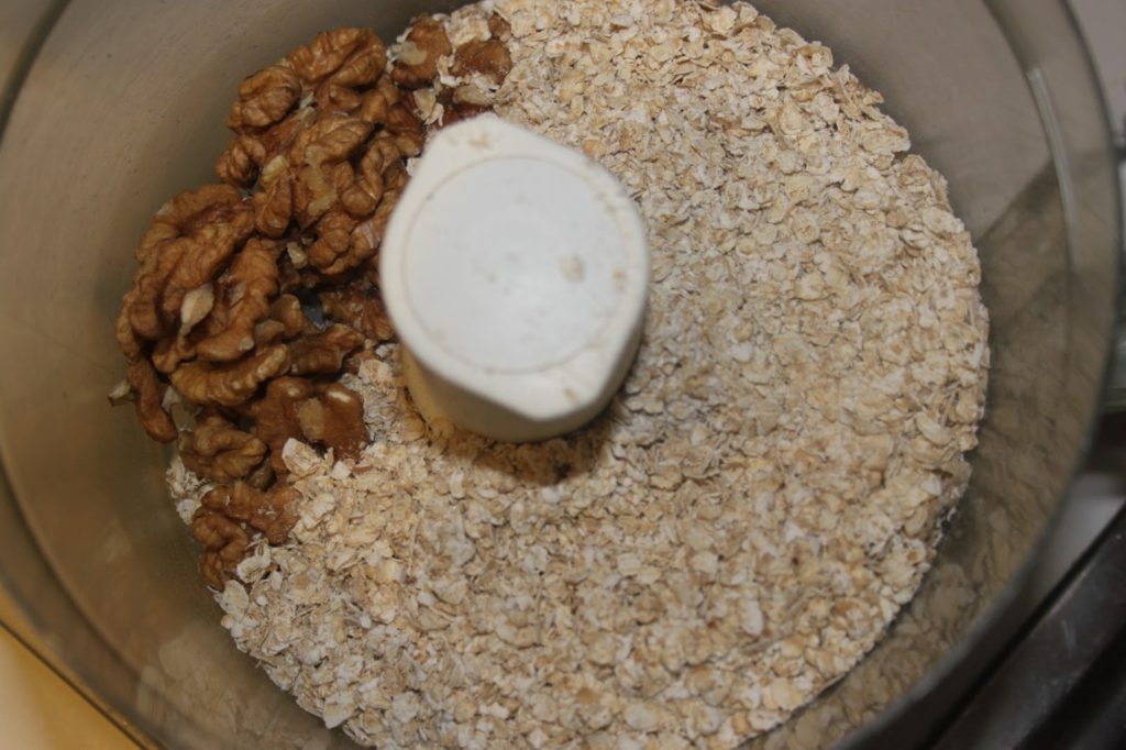 - Mettre les noix et les flocons d’avoine dans un mixeur.