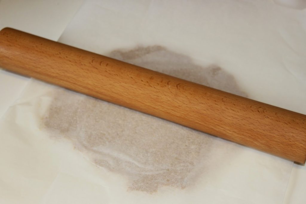 - Étalez la pâte au rouleau à pâtisserie entre deux feuilles de papier sulfurisé pour éviter qu’elle ne colle sur un plan de travail. Le fait de travailler sur un plan de travail fariné rajouterait trop de farine dans la pâte.