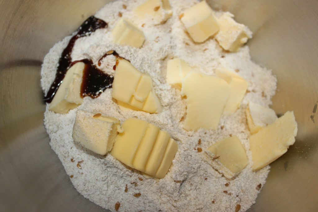- Mélangez puis ajoutez le beurre froid coupé en morceaux et la vanille liquide.