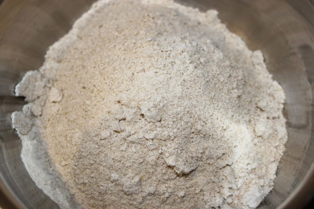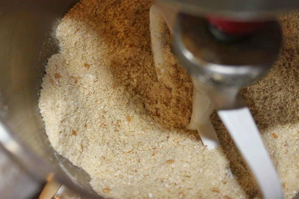 - Réduisez vos flocons d’avoine en poudre au mixeur et mélangez-les au sucre, à la farine et à la levure chimique.