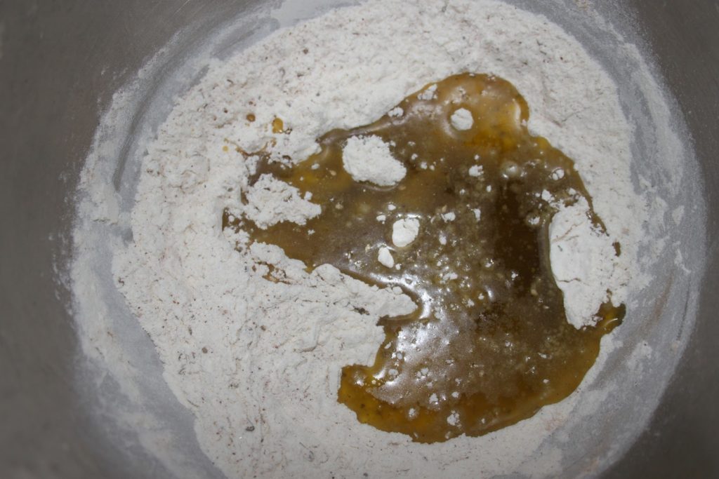 Diluer la levure fraîche ou déshydratée dans un peu d’eau tiède.